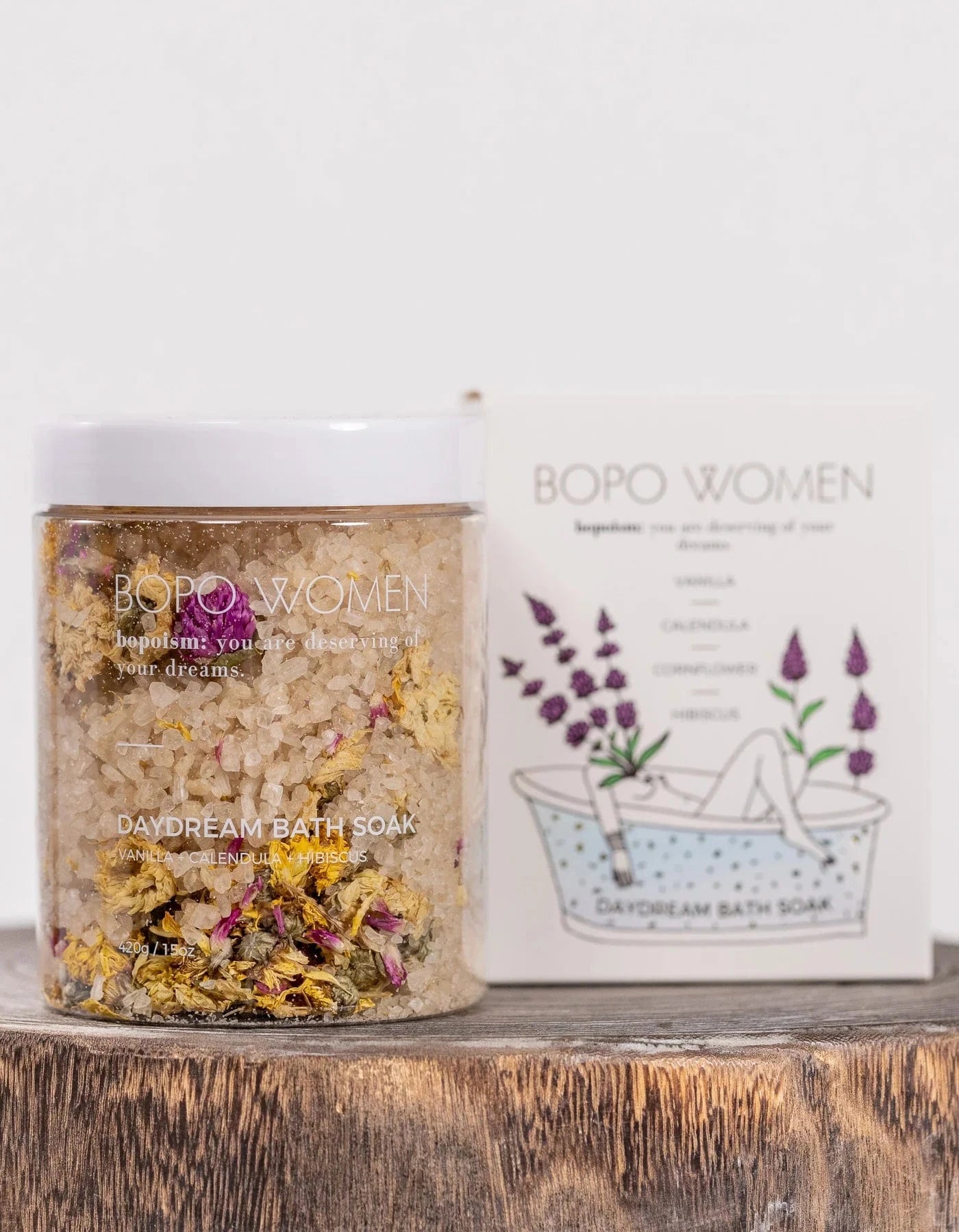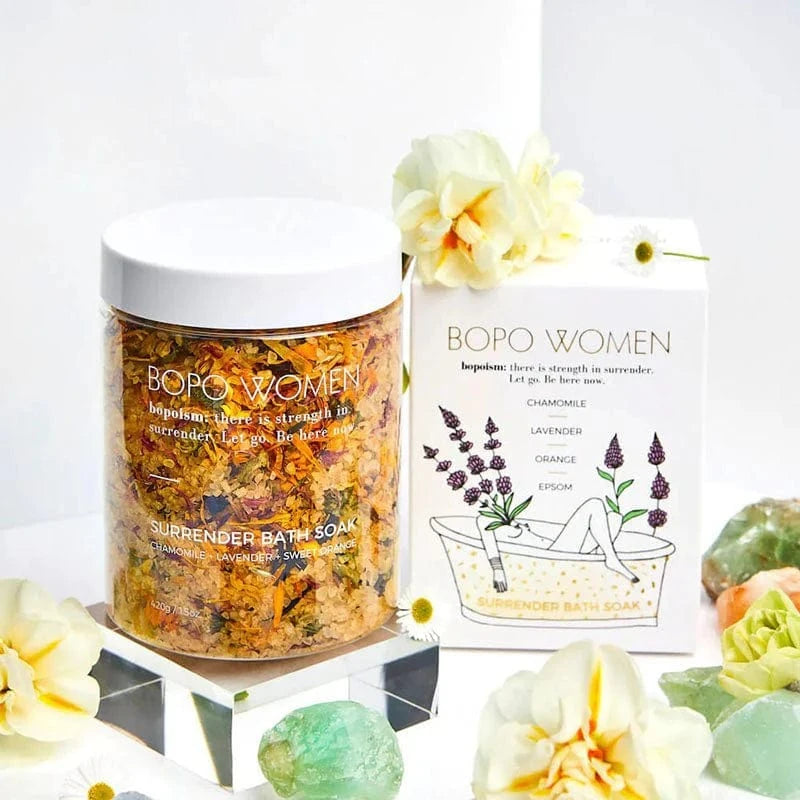 A soothing and de-stressing bath soak designed to gently cleanse, soften and moisturise tired skin. Incorporating a calming blend of pure essential oils and mineral rich Epsom salts, this soak was crafted to provide a soothing relief from our busy modern world & endless to-do lists. 420g