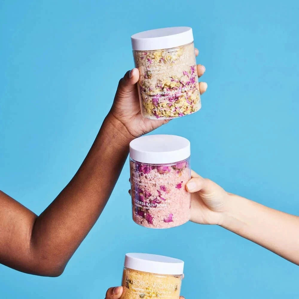 A natural fusion of soothing lavender, clementine, rosehip and sugandha kokila essential oils to ease the mind and replenish the skin. Infused with organic dried rose petals and epsom salts for the ultimate sensual bathing experience. Romance yourself.