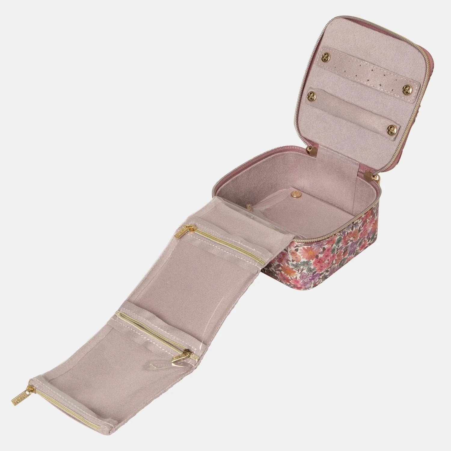 Crafted with a beautiful Liberty Tana Lawn™ outer in the feminine Sandra Springs floral design and lined with soft pink suedette, the Cube is an ideal gift for yourself or someone you love. A great size for travelling or as a jewellery box to keep extra special pieces close at hand at home, the Cube is the perfect organisation solution.
