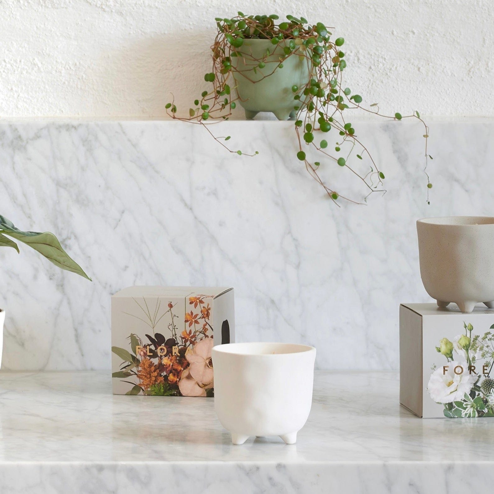 A limited-edition selection of botanically scented soy wax candles poured in tactile ceramic pots. Enjoy the divine scents of the candle then use the stylish pot for your favourite little plant. Trim wick after each burn and replace the dust cover to protect the scent and quality of your candle.