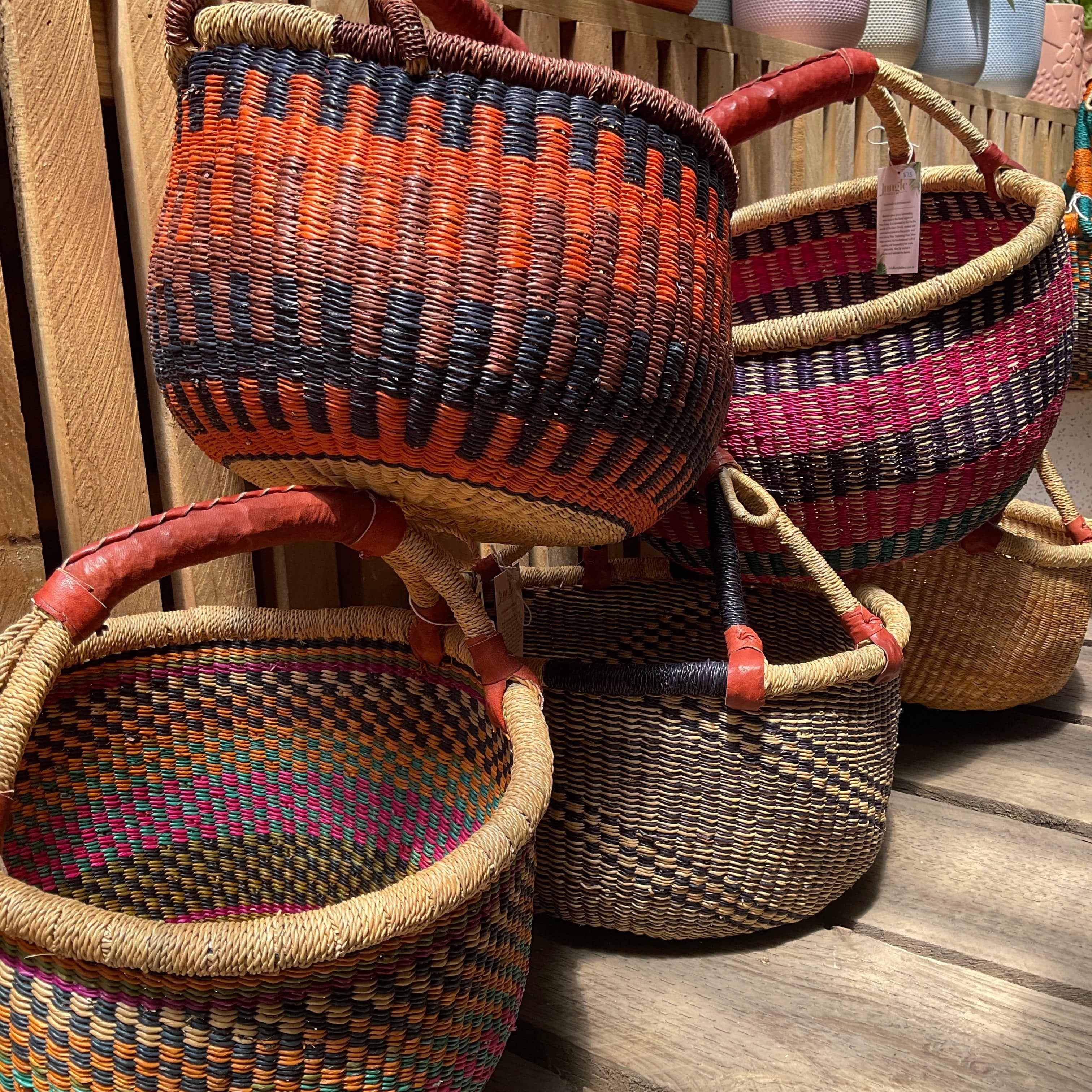 African woven round basket