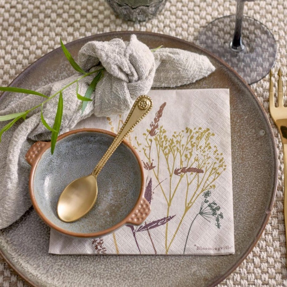 The Sirri or Hezha Napkin by Bloomingville is a pack of 20 napkins in FSC recycled or mixed paper. The napkins have a beautiful design of delicate florals or a birdie motif in complementary colours, perfect for daily use or for those special dinners with friends and family.