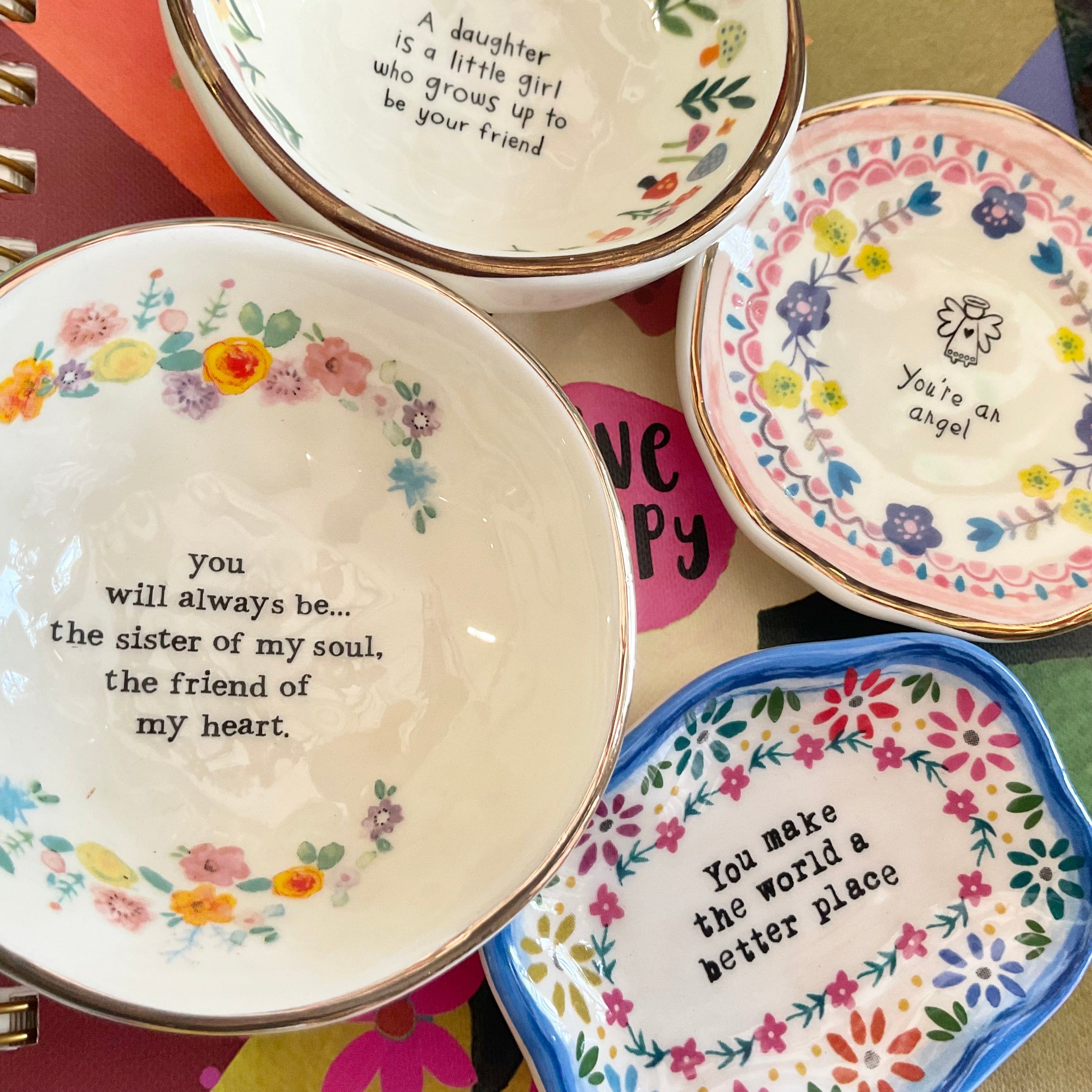 Gorgeous gold trim trinket dishes with a lovely message to hold your bits and bobs.