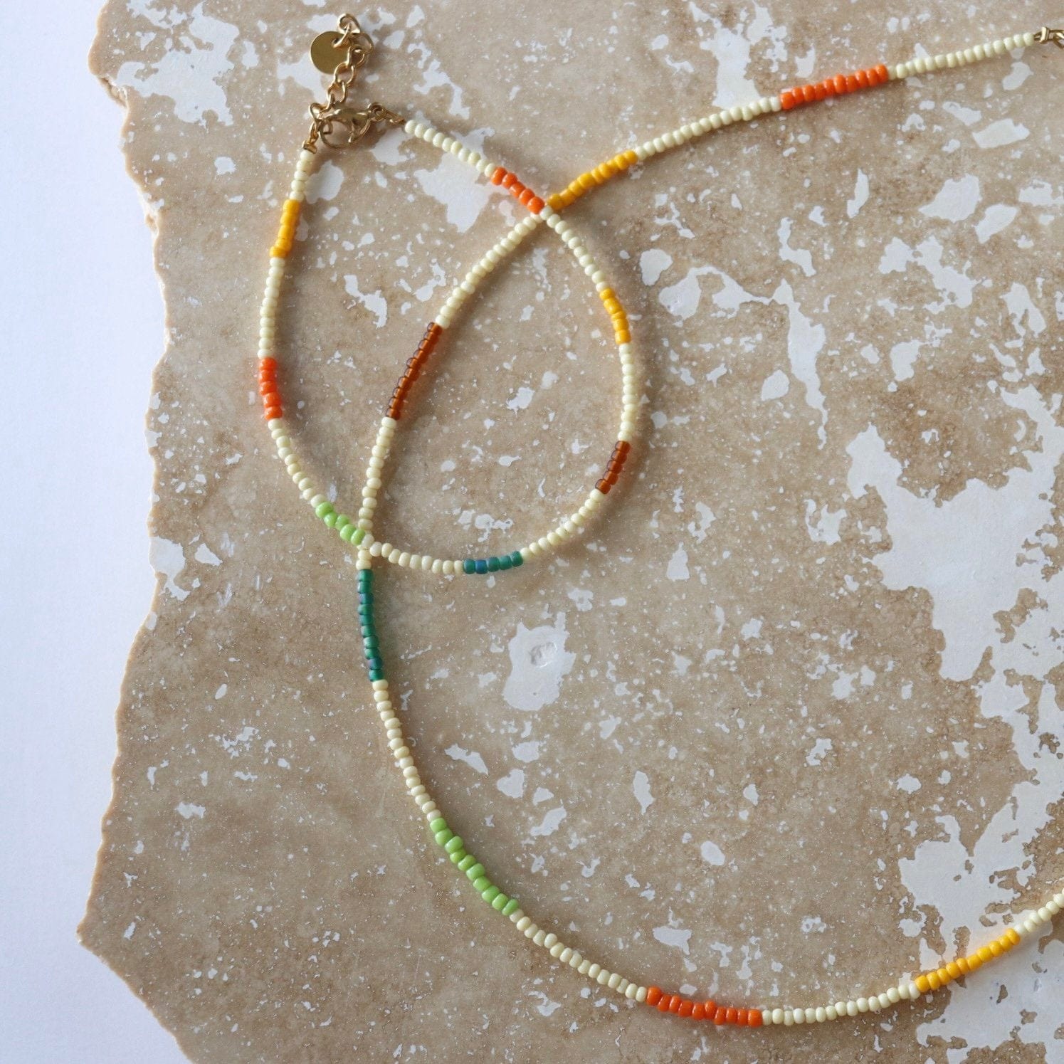 70’s strand of solid colour stripe pattern of 2mm glass seed beads. Pair it with the matching Necklace for the win!