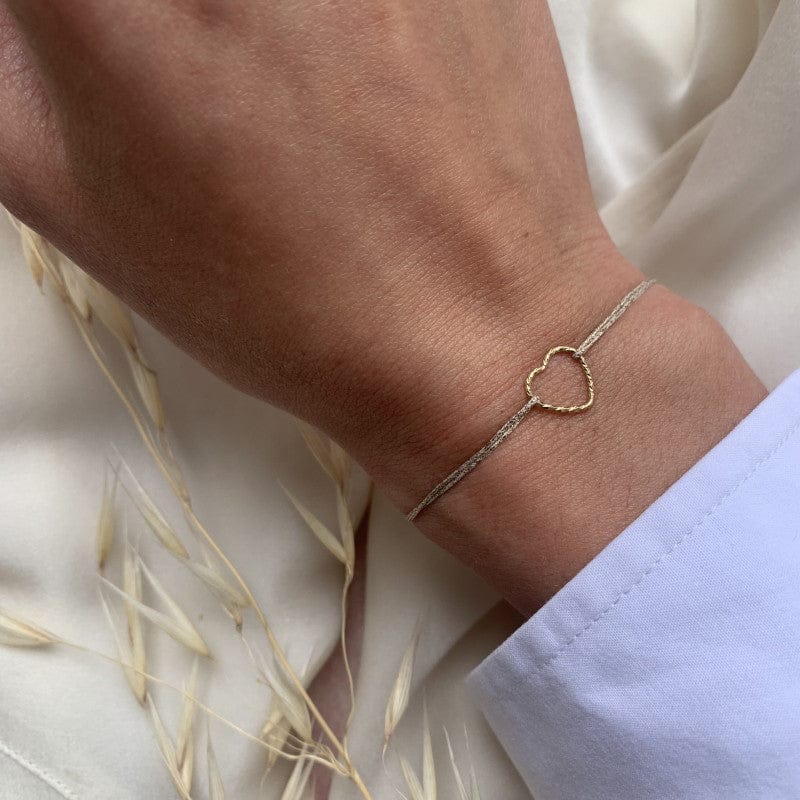 Bracelet on lurex thread, 10 mm chiselled heart in gold plated 3 microns