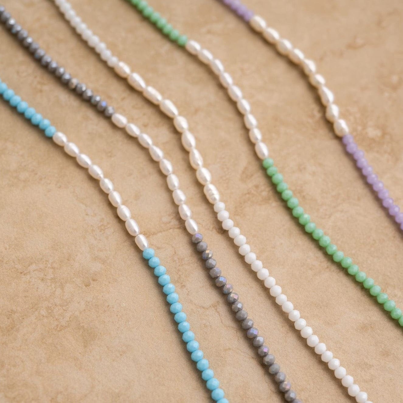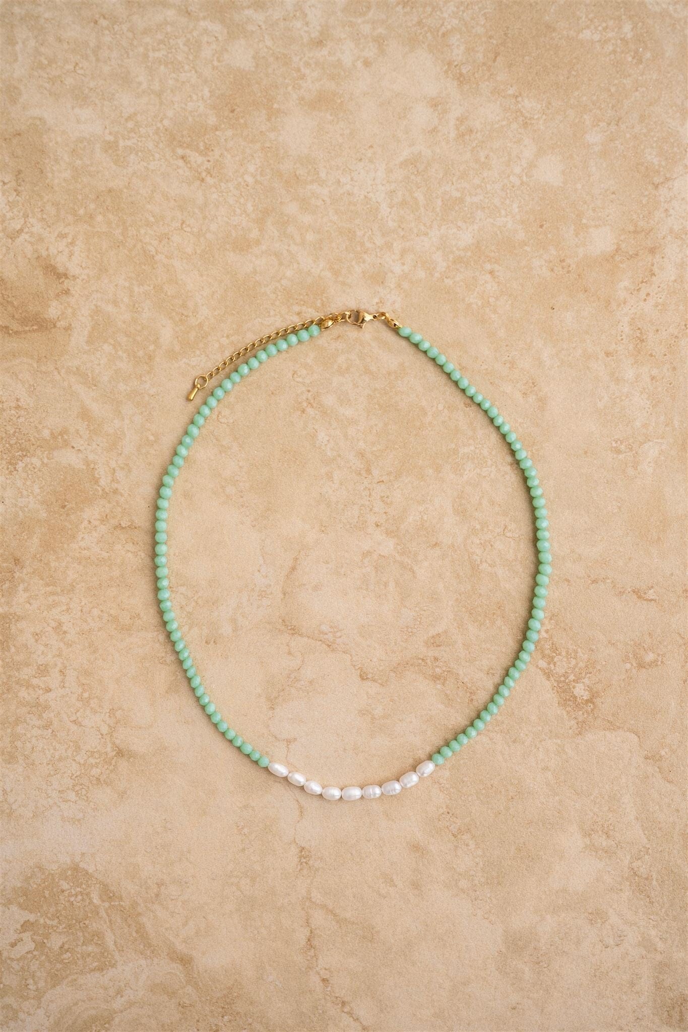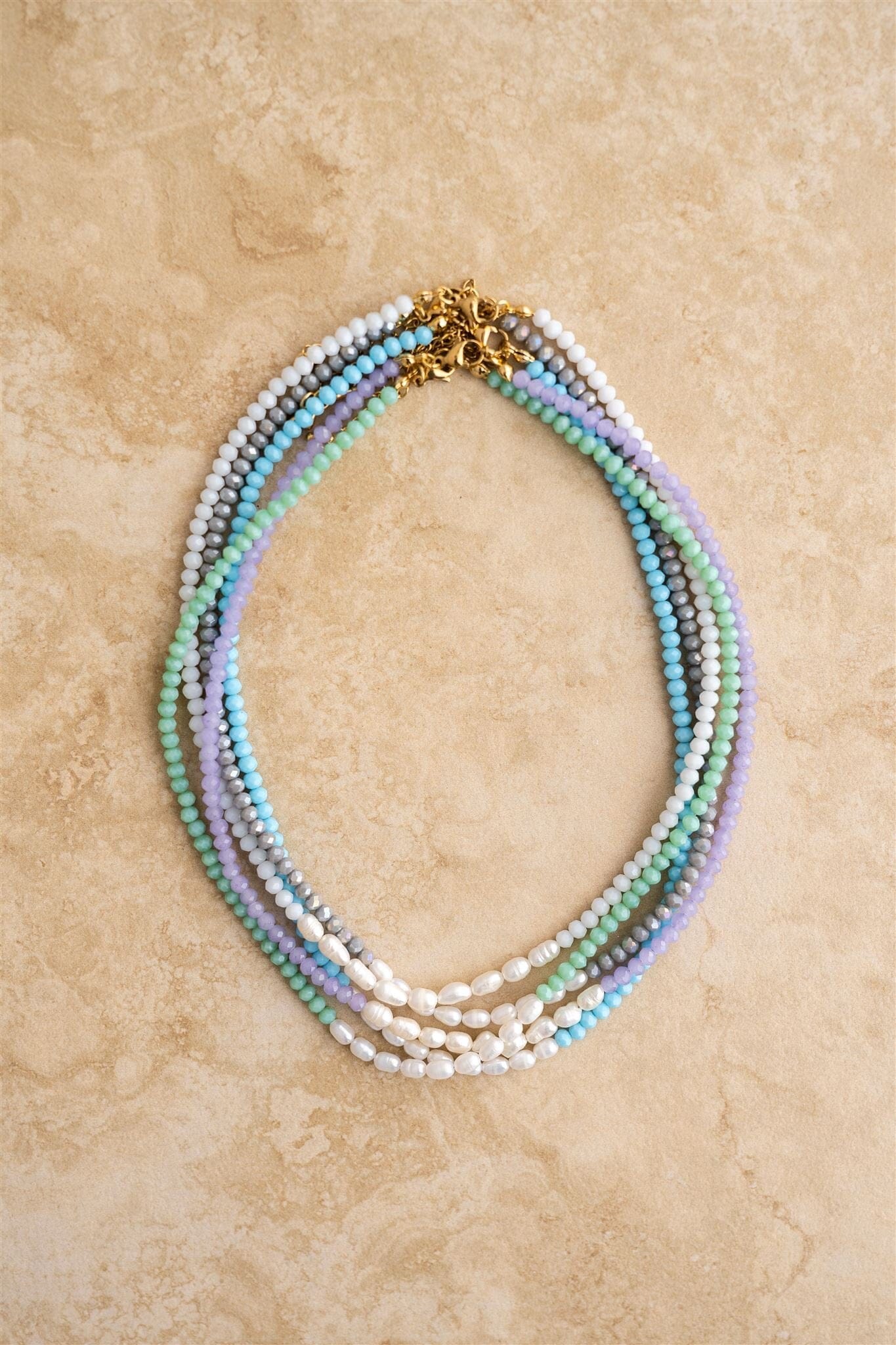 A gorgeous beaded crystal necklace available in Mint and Turquoise. Perfect for the bohemian beach babe.
