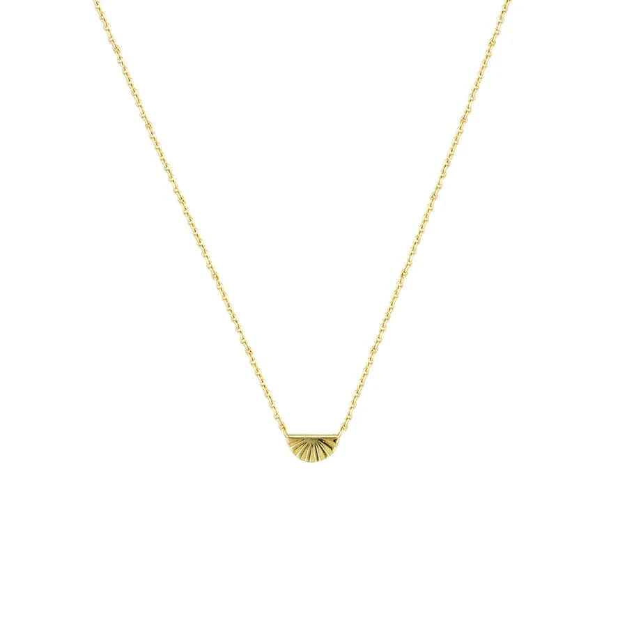 This dainty pendant features a rising sun motif, offering a refined addition to any outfit. Perfect for layering or stacking, it adds a unique and stylish touch to your look. Embrace the symbolism of the rising sun with this versatile and meaningful accessory.