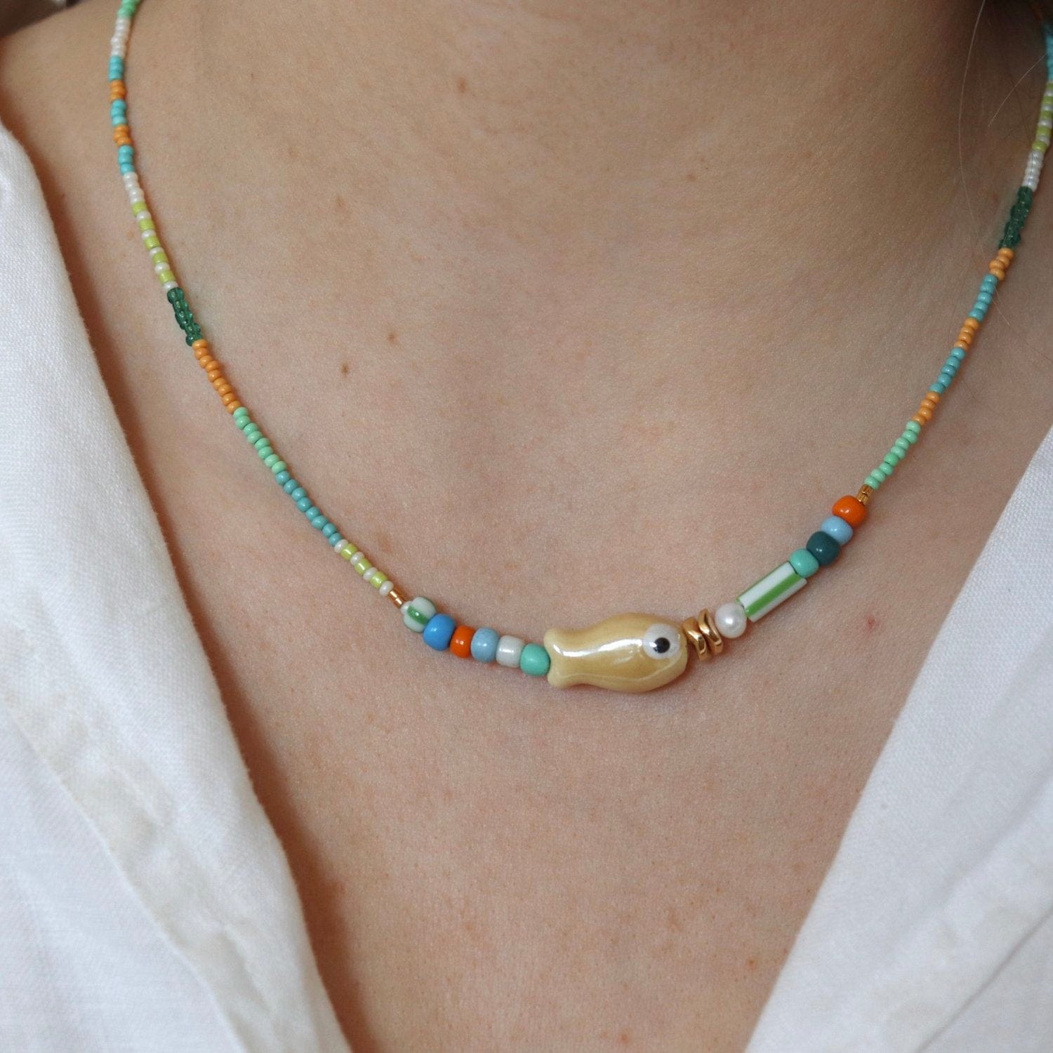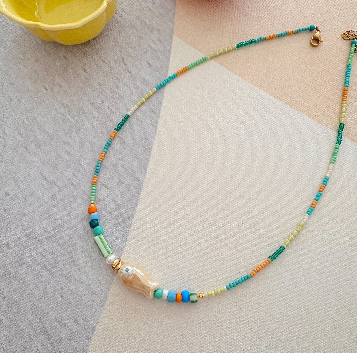 Perfectly right now fishy strand of solid colour 2mm glass seed beads in a patched pattern. Pieced together straight from the heart of all that is good in the world of colour.