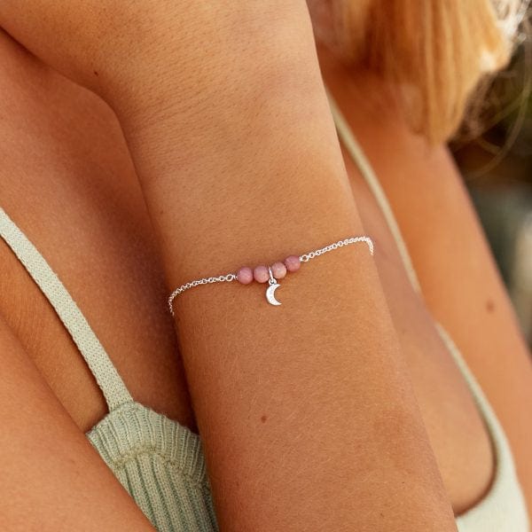 Experience the warmth of love and happiness with the Mahina Bracelet, a beautiful addition to our Mahina collection. This bracelet showcases stunning rhodochrosite stones that radiate with enchanting rosy hues. A tiny luna charm at the centre, symbolizing the dreamy essence of the collection. Embrace the compassion and self-healing energy of the Mahina Bracelet and let it remind you of the boundless love within.